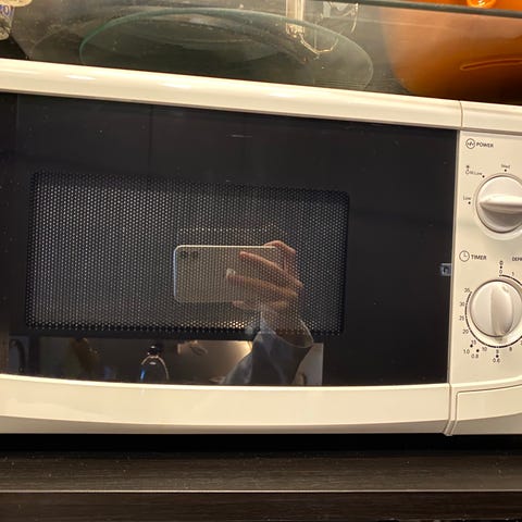 Toimiva samsungin mikro, teräksen värinen.