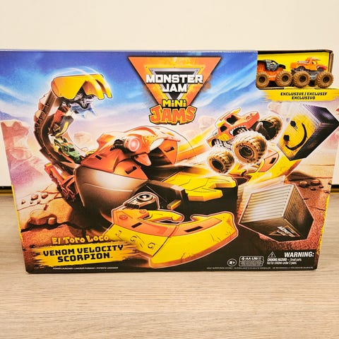 Monster High leikkiautorata. Muovinen leikkisetti, jossa on useampitasoinen ramppi ja ajoradat monsterautoille. Värit pääosin sininen, keltainen ja harmaa.