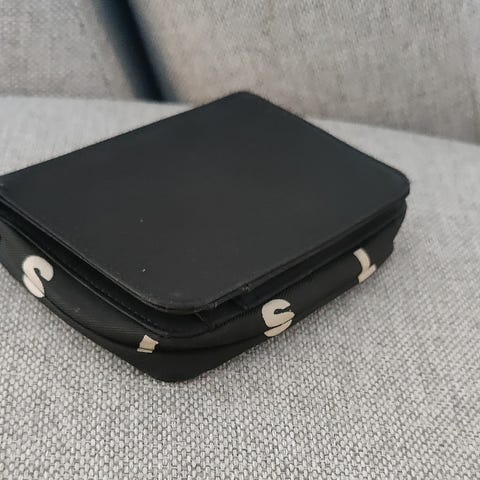 Tumin musta lompakko. On pieniä käytön jälkiä, mutta edelleen käyttökelpoinen.