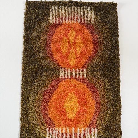 Myydään hyväkuntoinen ja puhdas Metsässä palaa -ryijy. Koko 144x107cm. Suunnittelija Kirsti Ilvessalo.