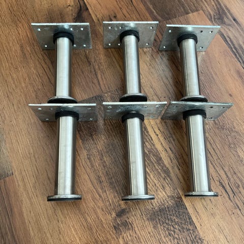 IKEA Capita säädettävät kalustejalat, korkeus 16 cm. Materiaalina harjattu teräs. Sopivat esimerkiksi kaappien, tasojen tai muiden huonekalujen jalkoiksi.