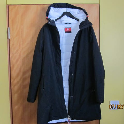 Luhta naisten takki, koko 42. Väri vaaleansininen. Tikattu malli, edessä vetoketjukiinnitys ja kaksi vetoketjutaskua. Hupullinen takki sopii arki- ja ulkoilukäyttöön viileämpiin säihin.