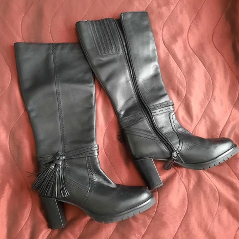 Mukava lestiset mustat hyvin siistit Relief varsikengät /talvisaappaat koossa 40. Näissä on säädettävissä pohkeesta, ja on muutenkin reiluhkoa mitoitusta, minä koin itselle liian leveäksi, eikä tullut muutoinkaan käyttöön koron takia, vaikka ei kovin korkea korko olekaan.