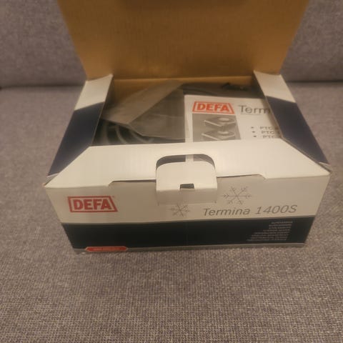 Defa Termini II 1700 auton sisätilanlämmitin. Teho 1700 W. Lämmitin liitetään verkkovirtaan ja se on tarkoitettu auton sisätilojen lämmittämiseen. Mukana oranssi virtajohto ja käyttöohje. Laitteessa on kytkin ja puhallusritilä etupuolella sekä pistotulppa liitäntää varten.