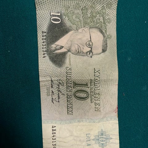 10 markan seteli vuodelta 1980, 6 €