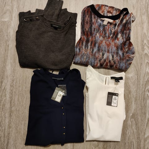 Kesävaatteita settinä M koossa. Alarivin vaatteet muuta kokoa kuin M, valkoista kauluspaitaa käytetty auki ja housuhaalari menee varmaankin myös M koolle, reilu s kokoiselle, jonka vuoksi käyttämätön. Hameeseen ommeltu pienennys, jonka purkamalla saa isomman. Kahdet sortsit edestä pitsiä, takaa kangasta, käyttämättömät. Lisäkuvat käyttämättömistä sandaaleista koko 37 ja topista, jotka tulevat vielä settiin mukaan. Vaatteet olleet aika pitkään kaapissa joten ovat ryppyisiä ja pölyisiä. Eri merkkejä.