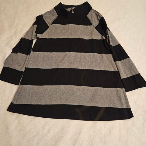 Marimekko naisten paita koossa L. Materiaalina puuvilla. Väriltään valkoinen mustilla raidoilla. Paidassa on väljä malli ja noin 3/4-pituiset hihat. Todella vähän käytetty