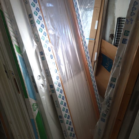 Valkoinen lasiaukkoinen sisäovi. Ovessa on kapea pystysuuntainen lasiruudukko usealla pienemmällä lasiruudulla. Ovi soveltuu sisätilojen välioveksi tiloihin, joissa halutaan päästää valoa huoneesta toiseen. Ovessa on valmiit reiät lukkorungolle ja painikkeelle.