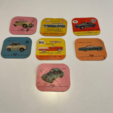 Paulig kahvipaketin keräilykuvia 18 kpl. Sivuun liimattuja.