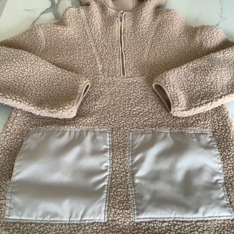 H&M teddy takki, koko S. Beige. Pitkät hihat ja pyöristetty helma. Edessä vetoketju kauluksesta rintaan asti.