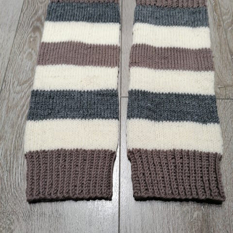 Sinisestä langasta kudotut säärystimet, koko näkyy kuvasta.