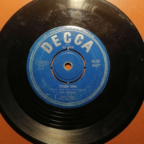 Myydään keräilyharvinaisuus vuodelta 1958: Georg Otsin 78 kierroksen shellac-levy (savikiekko). Levyn säestyksestä vastaa Gennadi Podelskin yhtye. Aito Decca-painos keräilijälle tai vanhan musiikin ystävälle.