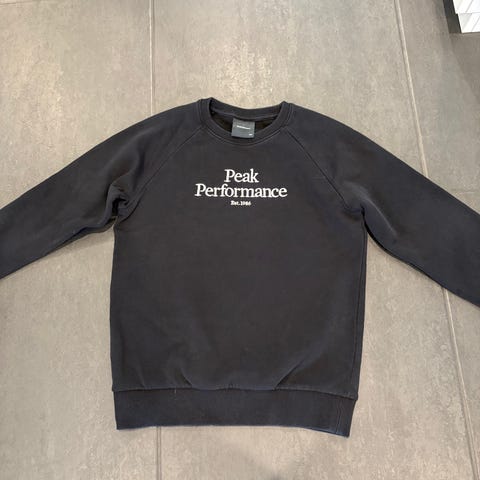 Peak Performance lasten collegehuppari, koko 150. Musta väri on jo haalistunut uudesta, ehjä.