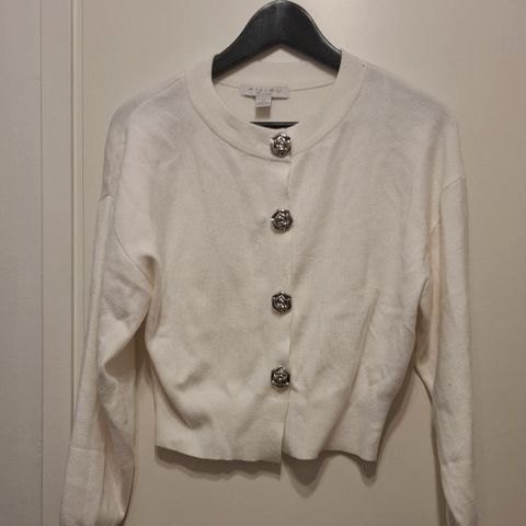 Valkoinen neuletakki naisille. Koko M. Väri valkoinen. Materiaali viskoosia. Pitkähihainen malli, jossa napitus edessä ja pyöreähkö pääntie. Sopii arki- ja toimistokäyttöön sekä kerrospukeutumiseen. Vaatetta ei ole juuri käytetty, on liian pieni , myyn äitini puolesta. Nokialla, voin postittaa.