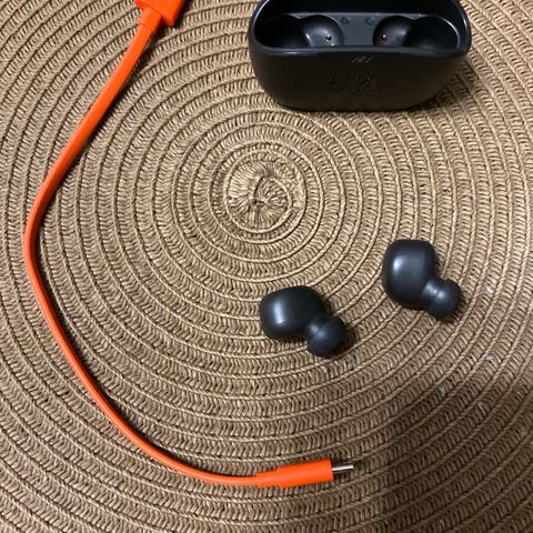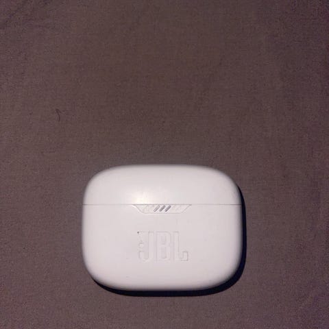 Langattomat JBL-korvakuulokkeet, valkoiset, latauskotelolla. Täysin langaton malli, silikoniset korvatulpat ja kosketuspinnat ohjausta varten. Latauskotelossa on LED-merkkivalot, jotka osoittavat akun tilan. Sopivat musiikin kuunteluun ja puheluiden vastaanottamiseen Bluetooth-yhteyden kautta yhteensopivien laitteiden kanssa. Pieni muovin lohkeama putoamisen seurauksena, ei vaikuta laitteen toimintaan. Jokainen