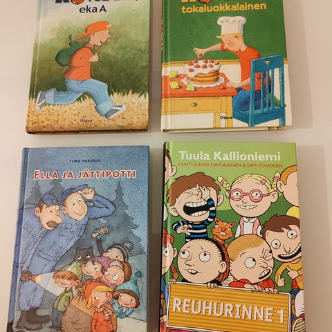 Tuula Kallioniemen "Konsta, eka A" kertoo Konstan ensimmäisestä kouluvuodesta ja koulunkäynnin arjesta. Teos sopii erityisesti alkuopetusikäisille lapsille luettavaksi tai luettavaksi yhdessä aikuisen kanssa. Nouto Katajanokalta tai Tori Diilinä.