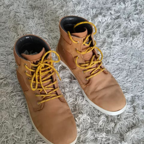 Helly Hansen talvikengät, koko 46. Ruskeat nilkkurit. Hyvässä kunnossa nauhat vähän elämää jo nähneet. Kengän reunassa lukee waterproof leather.