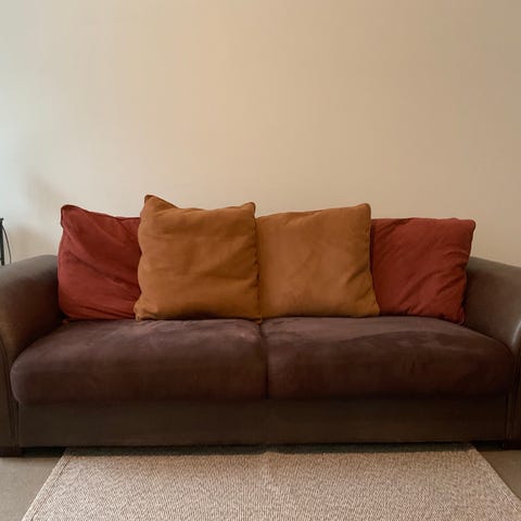 Kolmen hengen istuttava vintage ruskea mokka/nahka sohva. On hieman samettinen myös. Erittäin kaunis ja kunto kuin uusi.