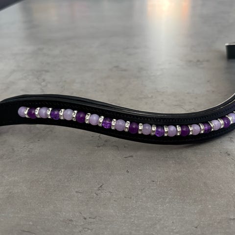 Käsinommeltu musta full kokoinen otsapanta. Pituus 42cm.