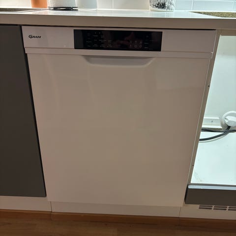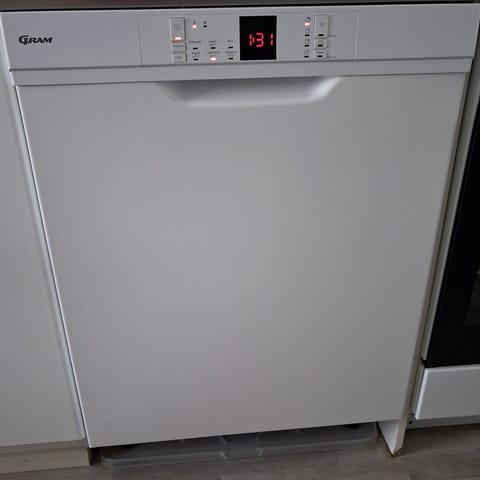 Gram astianpesukone tason alle -malli. Valkoinen etupaneeli ja integroitava asennus työtason alle. Laitteessa on useita pesuohjelmia, muun muassa eco-ohjelma ja eri lämpötilavaihtoehtoja, jotka valitaan yläreunan painikkeilla. Etupaneelissa on digitaalinen näyttö, josta näkyy ohjelman kesto ja tila. Sisäpuolella on kaksi korkeussäädettävää koritasoa sekä ruokailuvälinekori alakorissa. Ruostumattomasta teräksestä valmistettu sisätila ja perinteinen pesuainelokero luukun sisäpuolella. Soveltuu keittiöön vakiolevyiseen astianpesukonepaikkaan työtason alle asennettavaksi.