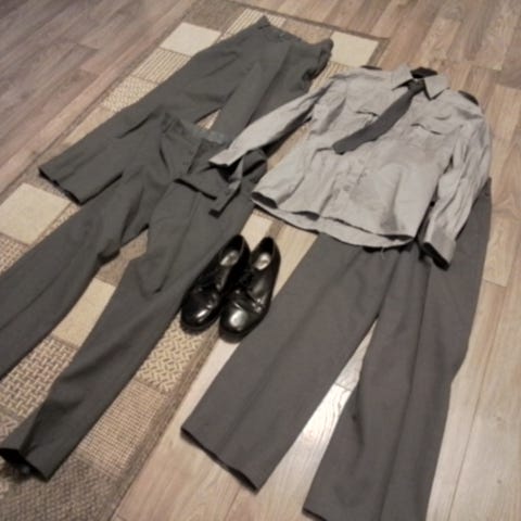 Vanhat armeijan harmaat housut, käytön jälkeä näkyy mutta ihan perus hyvässä kunnossa, koko jotain 48-50?.