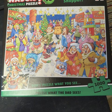 Wasgij Christmas Puzzle 19 Santa Dash palapeli. Pari kertaa koottu, hyvässä kunnossa. Kaikki palat tallella, samoin vihjelappu. Mukana myös avaamaton kansikuvan palapeli.