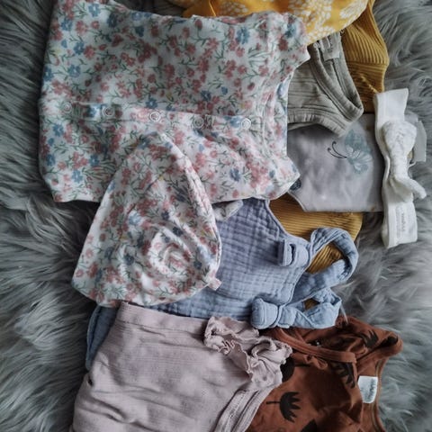 Ihana! vaatesetti vastasyntyneelle tytölle, koot 50…62. Setti sisältää