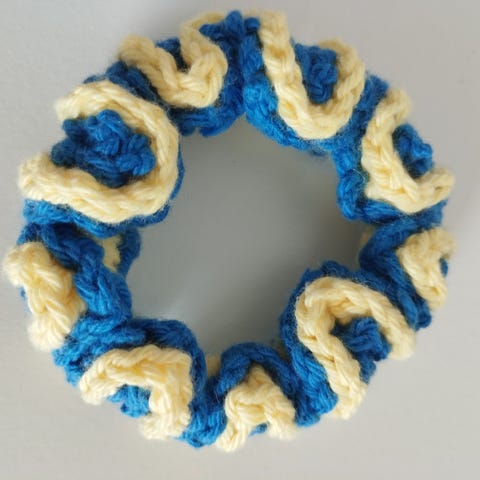 It's adorable. I know. I designed it. Every scrunchie I design is unique. The hair tie is attached to a loop on the back of the flower. I designed the scrunchie this way so that the hair tie is detachable. You can attach whatever hair tie you want. You can even slide in a hair clip or purse clip or key chain.