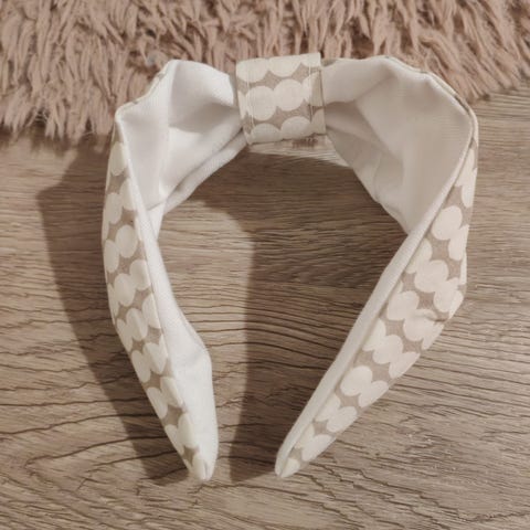 Kaunis vaaleasävyinen hiuspanta ja säilytyspussi