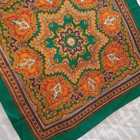 Uusi japanilainen villahuivi, 72x72 cm. Keltainen ja musta, ohut. 100 % villaa.