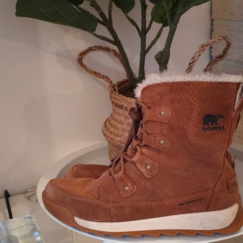Siistikuntoiset ja lämpimät Sorelin talvikengät. Kokolapussa koko 37. Vastaa kokoa 35-36. Ulkopinnan materiaali nahkaa.