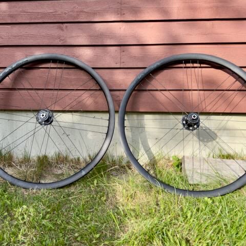 Campagnolo Vento G3 suorat kiekot vannejarruille. Campan vapaaratas ja pikalinkut. 10-spd pakka nyt kiinni, 9-spd pakka mukaan. Laakerit ok.