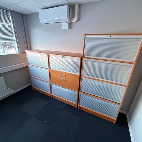 Myydään lukolliset toimistokaapit 10€/kpl. Kaappeja yhteensä 6kpl. Avaimet tallessa.