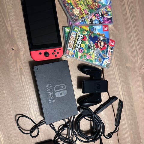 Myydään Nintendo Switch pelikonsoli. Pakettiin kuuluu telakka, HDMI-piuha, kahdet joy-con ohjaimet, yksi joy-con grip ja kantolaukku johon mahtuu koko konsoli.