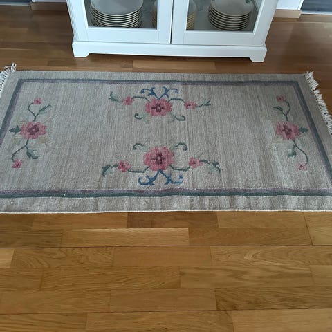 Finlaysonin siisti beige harmaa villamatto. Säilytyksestä rypyssä