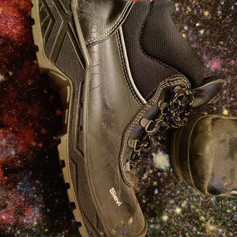 Turvakengät pitkällä varrella. Varren korkeus pohjasta mitattuna 30 cm. Varpaiden kohdalla naarmua, muutoin ei moitittavaa