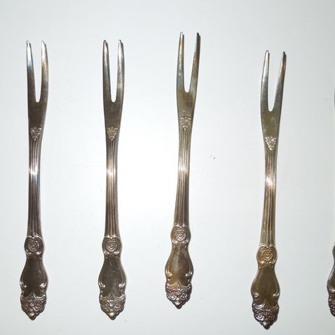 Hopeanväriset jälkiruokahaarukat koristeellisella varrella 6 kpl