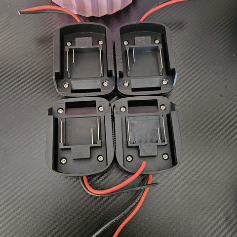 4kpl tarvikeakkuja ja teline 18v ~72wh, yhteishintaan 110e