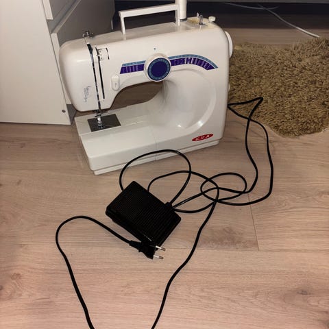 Täysin toimiva, mutta kun mä en vaan osaa käyttää niin parempaan kotiin tämä. Mukana alalokeroissa kaikenlaista sälää, eli siis vara neuloja ja erilaisia osia mistä en mitään ymmärrä. Mukaan suojahuppu.