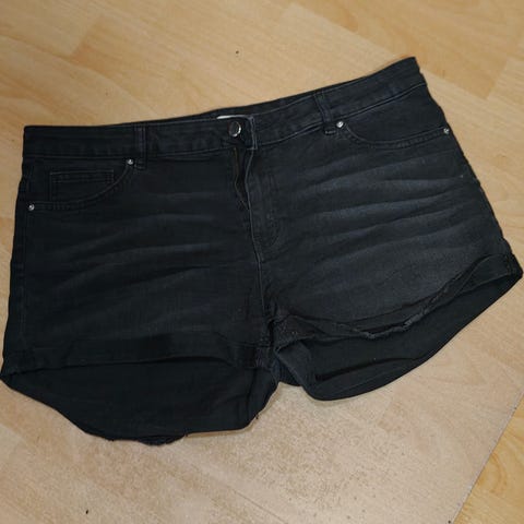 Myydään kuvan farkkushortsit koko 42 H&M. 98% puuvillaa ja 2% elastaania. Lahkeet käärittävät, kiinnitys napilla. Ehjät ja siistit.