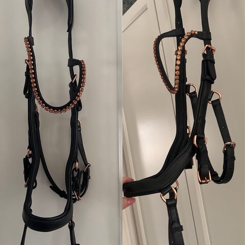 Tumman Ruskeat nahkaiset suitset hevoselle. Suitset sisältävät otsapannan, niskahihnan, poskihihnat sekä ohjat. Säädettävät soljet mahdollistavat istuvuuden säätämisen hevoselle sopivaksi. Sopivat yleiseen ratsastuskäyttöön.
