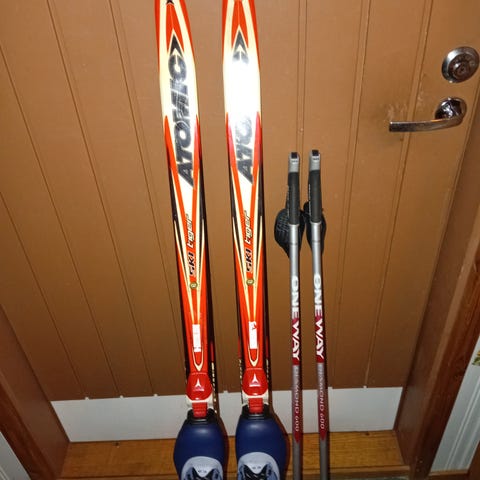 186cm sukset, nnn-sidetyyppi. Monot 39,sauvat 140cm. Paketti hiihtokunnossa.