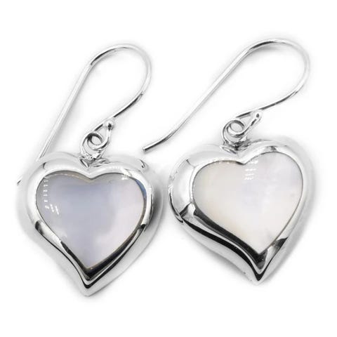 Helmiäissydän, pinkki - Hopeiset korvakorut