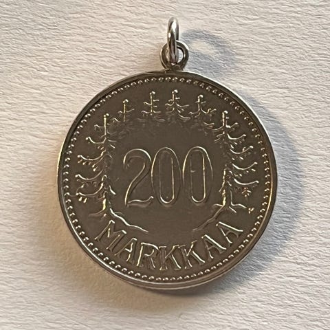 Hopeinen Raja-Karjala riipus.