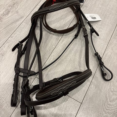 Nahkaiset tummanruskeat suitset hevoselle koko cob. Suitsissa on turparemmi ja otsapanta sekä säädettävät hihnat istuvuuden muokkaamiseen. Sopivat yleiseen ratsastuskäyttöön. Materiaali pehmeää hyvä laatuista nahkaa, merkki Globus, ei sovitettu.