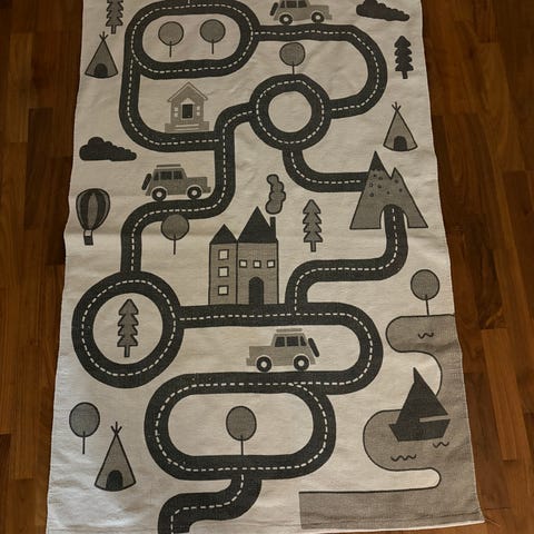 Kestävä lasten leikkimatto kutsuu hauskoihin leikkeihin pikkuautoilla! Matto pysyy hyvin paikoillaan vauhdikkaammissakin leikeissä liukumattoman pohjan vuoksi. Kevyttä ja helppohoitoista bukleeta, vesipestävä. Materiaali: 100% polyamidia, pohja lateksia. Väri: harmaa