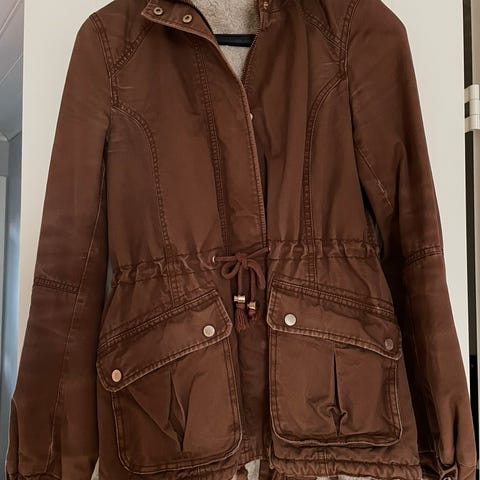 Myydään hm parkatakki. Oversize-malli. Luonnossa ei iha yhtä."kirkas".