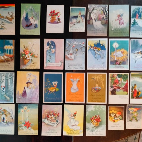 Osin kulkeneita, osin kulkemattomia Martta Wendelinin postikortteja. Kunto vaihtelee, kaikki kohtalaisen kuntoisia, jokunen hyväkin joukossa.