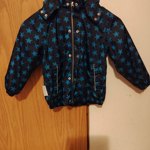 Sininen, jossa pinkki vuori kokoa 98, irrotettava huppu. 7e.