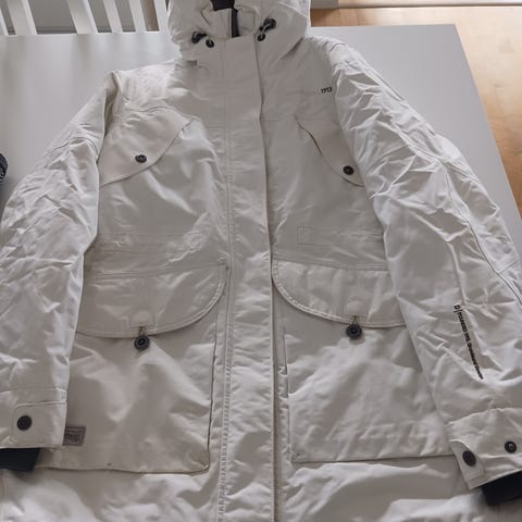 Naisten Didriksons Lori kevättakki. Siisti ja ehjä, mutta yhdessä kohtaa hento tahra.